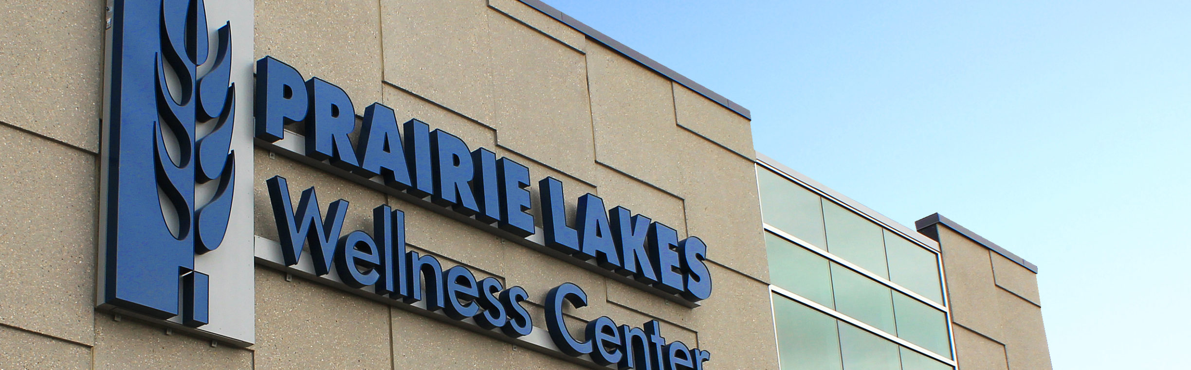 The Wellness Center graphic identity includes the wheat from the Prairie Lakes Healthcare System logo. The bold stalk represents the “staff of life” and has kernels of wheat that reach up in a pattern of growth. The blue color reflects the glacial lakes region that Prairie Lakes serves.
